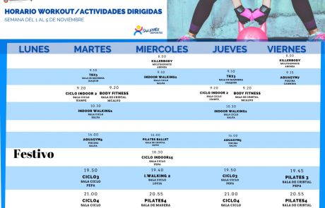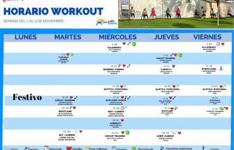 Esta semana se concibe con la ampliación del horario, adelantando las sesiones de Workout desde las 16 h. El programa incluye trabajo específico de cardio y fuerza, adaptado en intensidad y volumen, a las capacidades físicas del usuario.