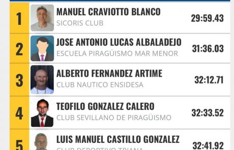 José Antonio Lucas Albaladejo, de la Escuela de Piragüismo Mar Menor se impuso en segunda posición en el Campeonato de España de Invierno en la categoría Hombres Veteranos (65-69) en K-1 venciendo una distancia de 5.000 m. Además, la pareja formada por Lucas y Ventura Guillén se impuso en cuarta posición en K-2.