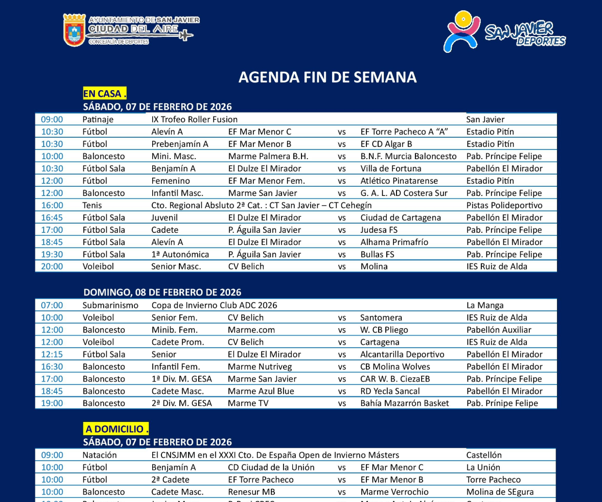 Varias citas con deportistas/clubes del municipio para ver el domingo 14 de febrero en streaming: