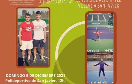 El campeón por España por equipos absoluto y exjugador profesional de tenis, Jesús García Pardo se enfrentará en un partido de exhibición a Juan García Bragulat en el polideportivo municipal. El evento está organizado por el Club Tenis de San Javier y se celebrará el próximo 5 de diciembre a las 12 h.
