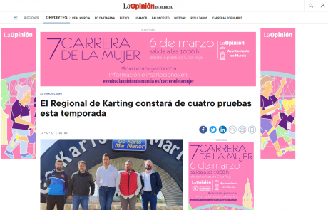 El próximo fin de semana (19,20/02), el circuito Go Karts Mar Menor de San Javier acogerá la primera prueba del Campeonato Regional de Karting, como así se afirmó en el acto de presentación del evento por el concejal de deportes, Sergio Martínez.