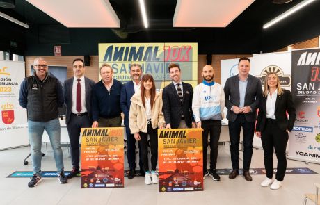 Pistoletazo de salida de la nueva carrera Animal 10 San Javier Ciudad del aire – Gran Premio EMSOLAR que presentó Sergio Martínez, concejal de Deportes del Ayto. de San Javier, Fran Sánchez, Director General de Deportes, Antonio Gatón, director técnico de la prueba, David Martínez, presidente del Grupo Caliche, Gustavo Torres, director de Cajamar y presidente del Track And Field Sport Team, así como la presidenta de la FAMU, Pruden Guerrero y los atletas Laura Nicolás y Manuel Marchena, vigentes campeones regionales de 10K en Ruta.