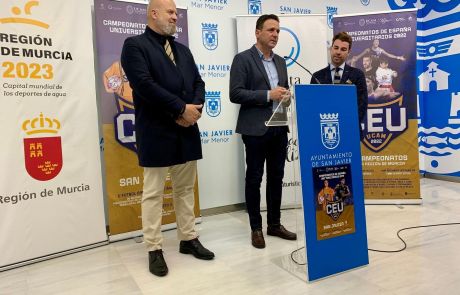 Sergio Martínez, concejal de Deportes del Ayuntamiento de San Javier, presentó los próximos Campeonatos de España Universitarios que albergarán los pabellones de San Javier y El Mirador. Al acto, acudió Fran Sánchez, Director General de Deportes y Pablo Rosique, responsable de la Universidad Católica San Antonio de Murcia, organizadora de los 20 campeonatos que se disputarán en la Región.