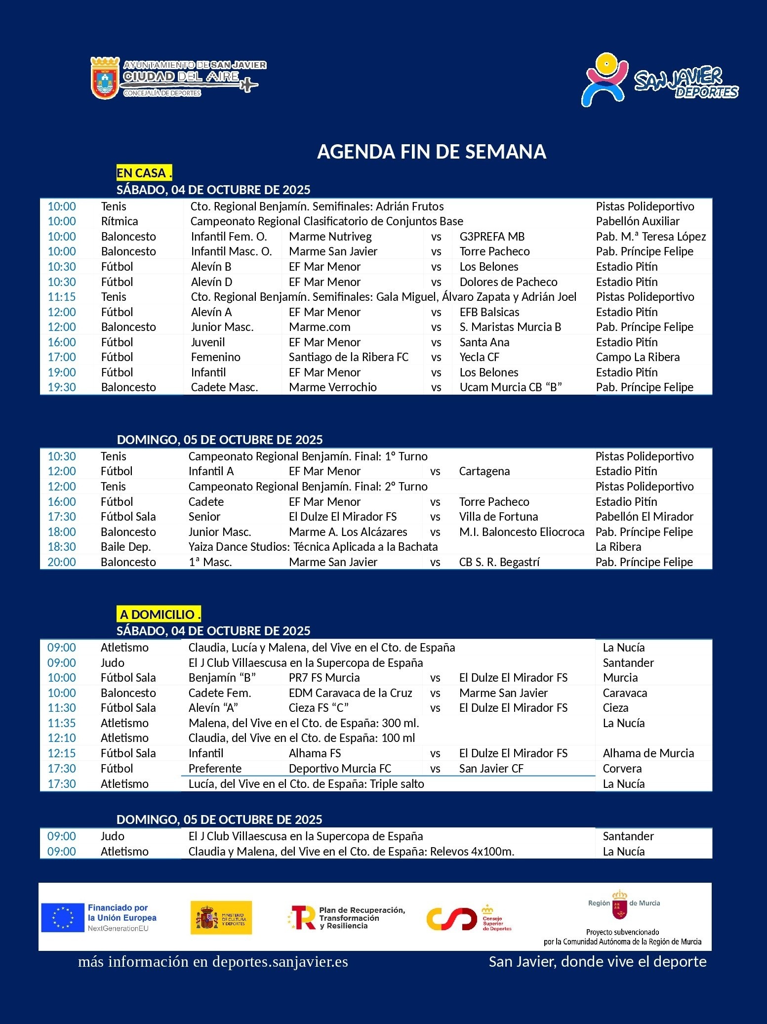 El Campeonato Regional de tenis de categoría benjamín, en las pistas de tierra batida del Polideportivo, el Cto. Regional Control Base Conjuntos y 3ª Fase de la Copa de España Conjuntos, así como el resto de citas habituales de los clubes, es lo más destacado de este fin de semana deportivo (04/05-octubre).