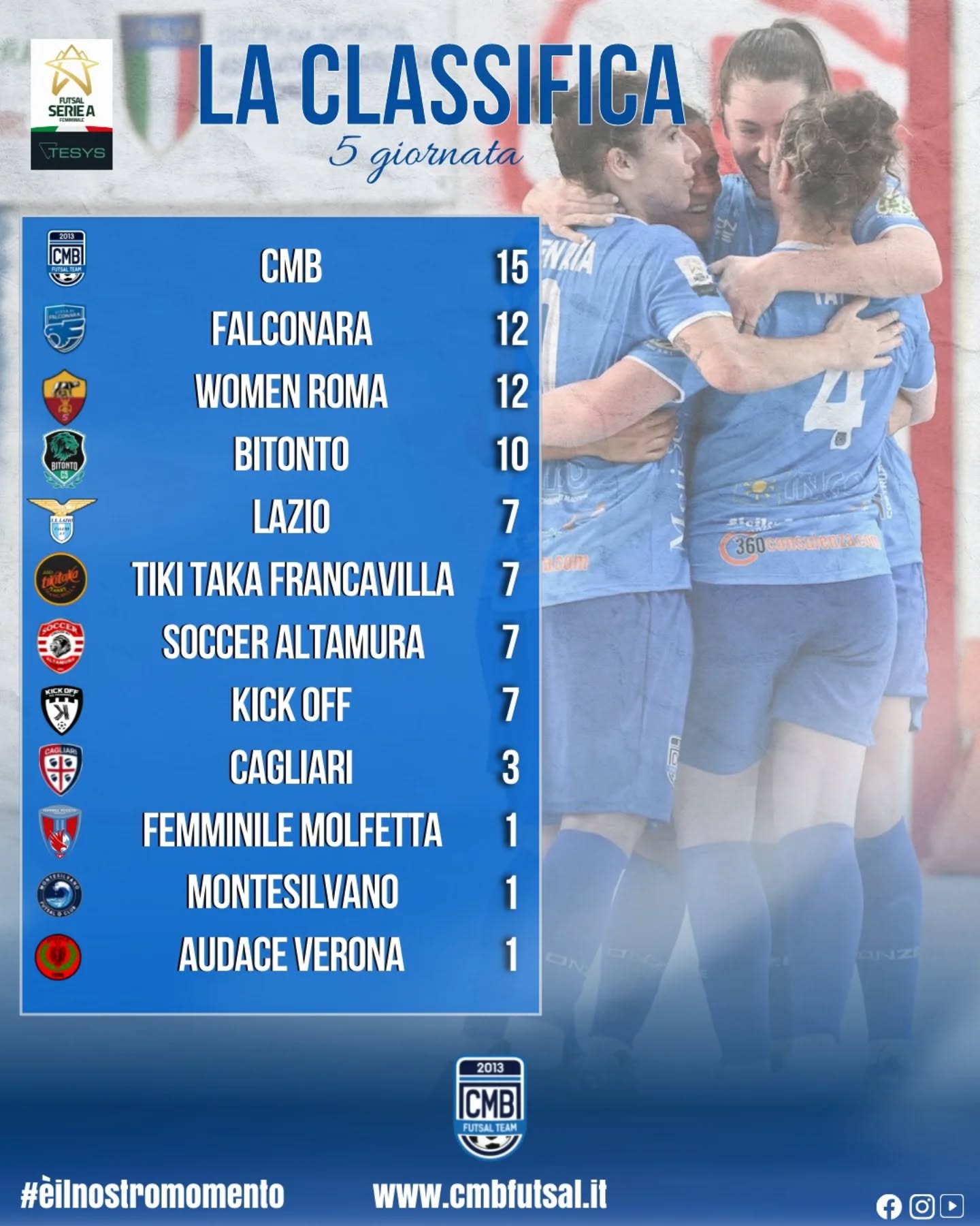 Con 15 puntos, el CMB es líder, seguido del Falconara y del Roma, empatados con 12.