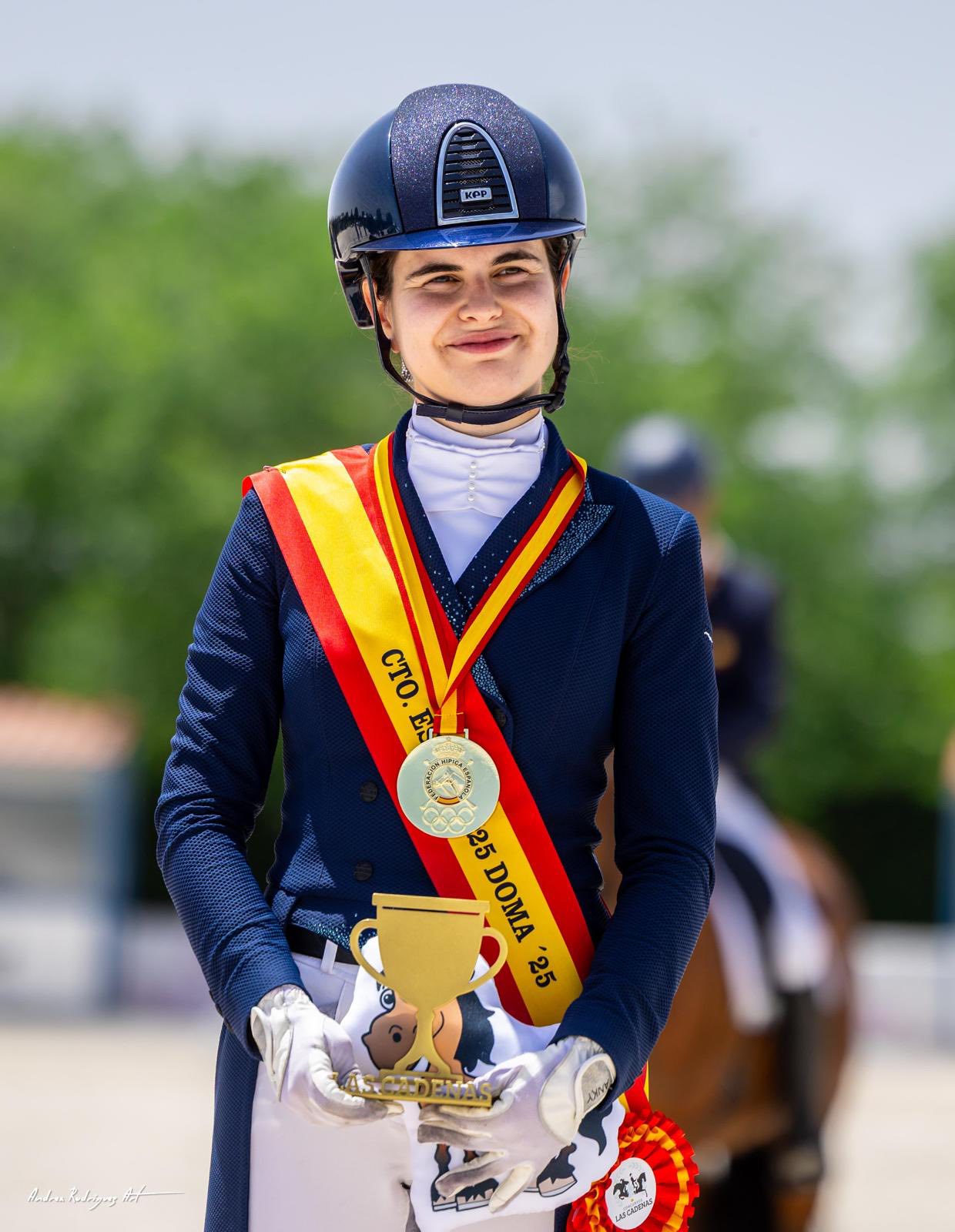 Marta, de apenas 21 años, está convocada en la categoría U25 con su Goerklintgaards Quantico y dominó el Cto. de España de Doma Clásica por partida doble: haciéndose con la primera posición con la medalla técnica del Nacional y brillando en la prueba decisiva, rubricando así, el oro del Campeonato 2025.
