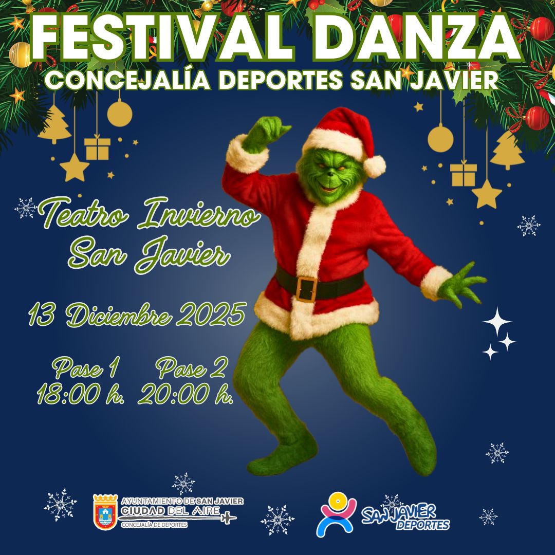 El próximo 13 de diciembre de 2025, la Concejalía de Deportes del Ayto. de San Javier celebra su tradicional Festival de Danza de Navidad, en el Teatro de Invierno de San Javier: El primer pase será a las 18h., y el segundo, a las 20h. En este tradicional evento, participan todos los grupos de la Concejalía: Minidanza, Danza I, II, III y IV, Ritmo a tu ritmo, Aerodance y Danza Adultos I y II.