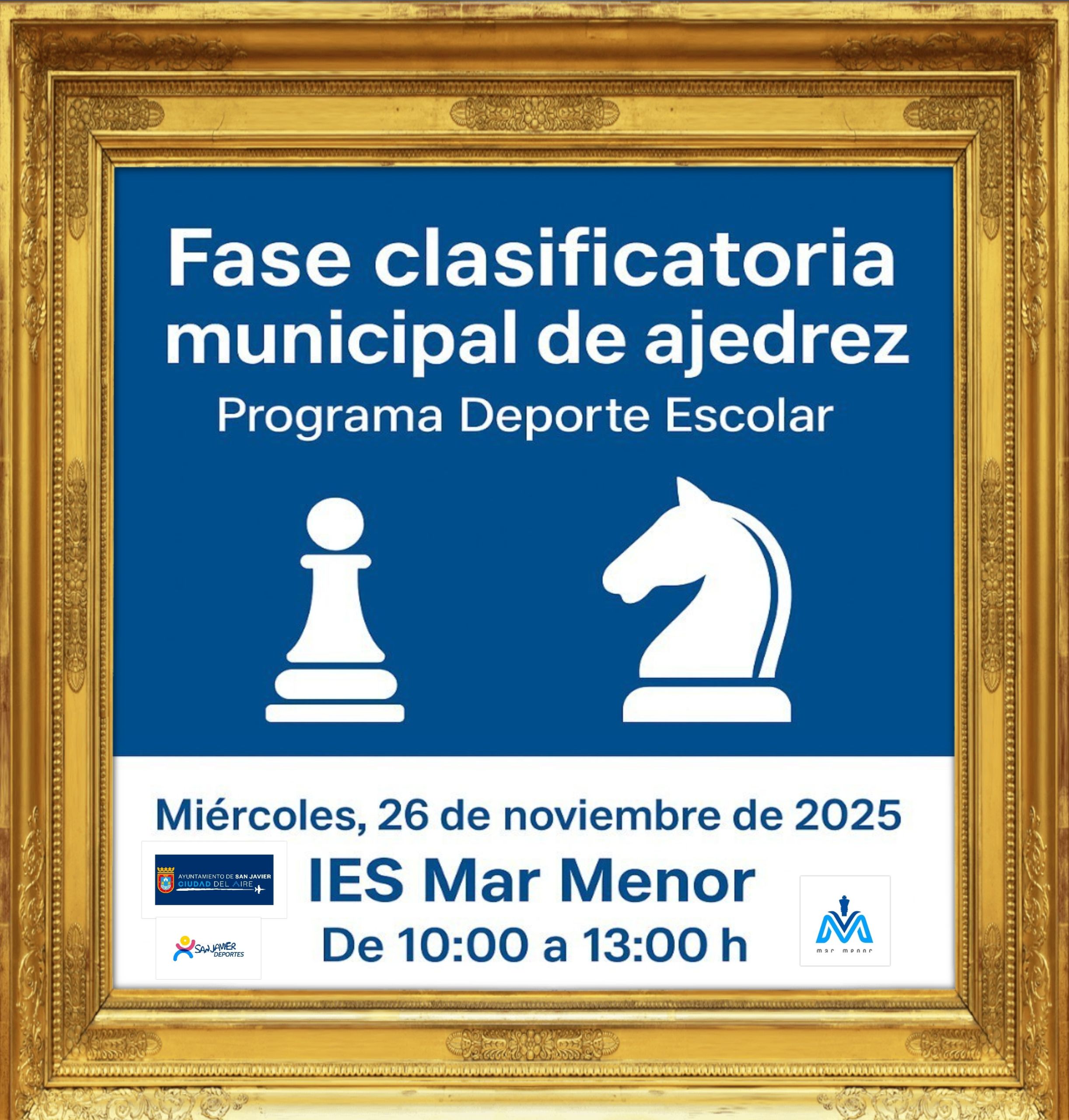 El próximo 26 de noviembre de 2025, el IES Mar Menor se enroca al ajedrez y brillará con el talento de los jóvenes sanjaviereños, al acoger la Fase clasificatoria municipal del deporte, arte y cultura de las 64 casillas. El evento, enmarcado en el Programa de Deporte Escolar de la concejalía de Deportes del Ayto. de San Javier, cuenta con la colaboración del Club Ajedrez Mar Menor.