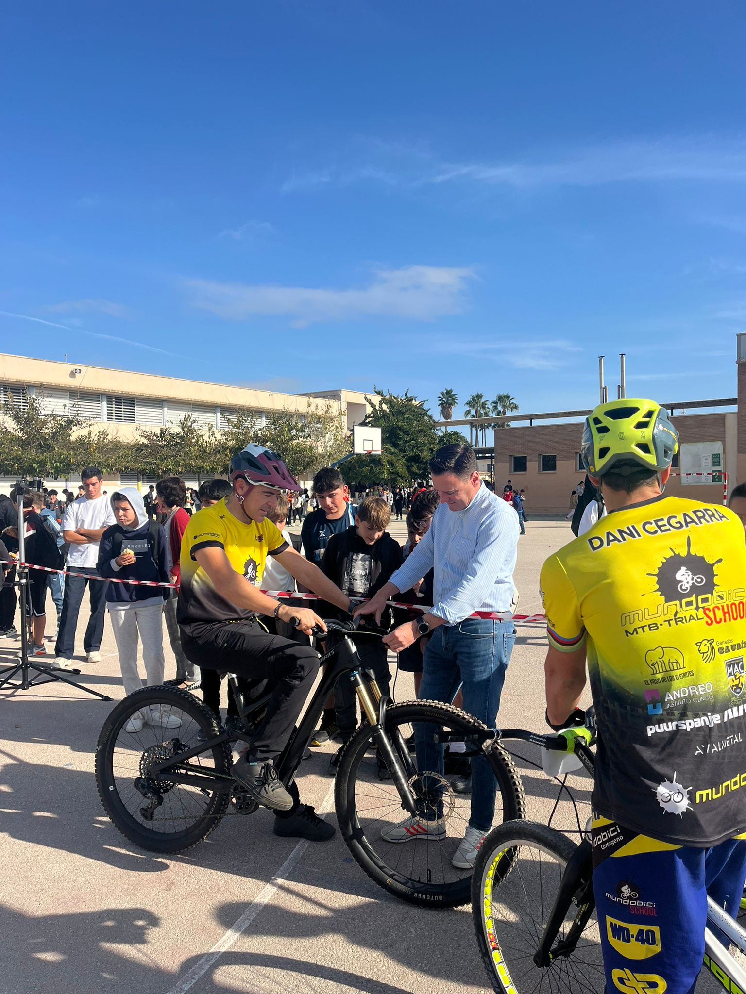 El IES Mar Menor acogió una nueva promoción deportiva: En esta ocasión, se trató de una exhibición de Trial Bici que hizo las delicias del alumnado que pudieron descubrir desde cerca, técnicas básicas de la especialidad deportiva, como equilibrio y coordinación.