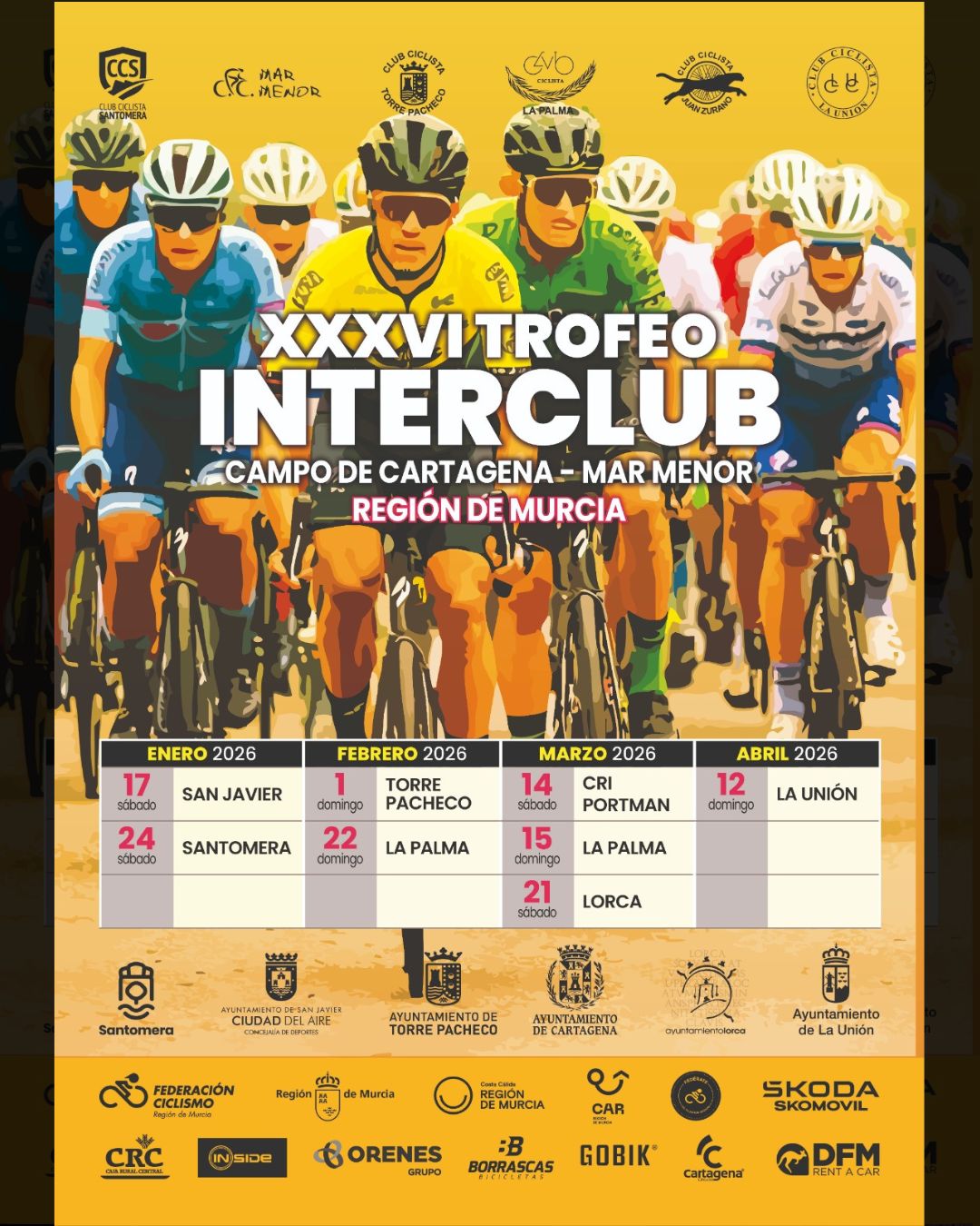 San Javier será la primera parada del XXXVI Trofeo Interclub Campo de Cartagena Mar Menor: El evento, que tendrá 8 pruebas, organizado por la Federación de Ciclismo de la Región de Murcia, con la colaboración del CC Mar Menor, tiene prevista su fecha para el próximo 17 de enero en Pozo Aledo.
