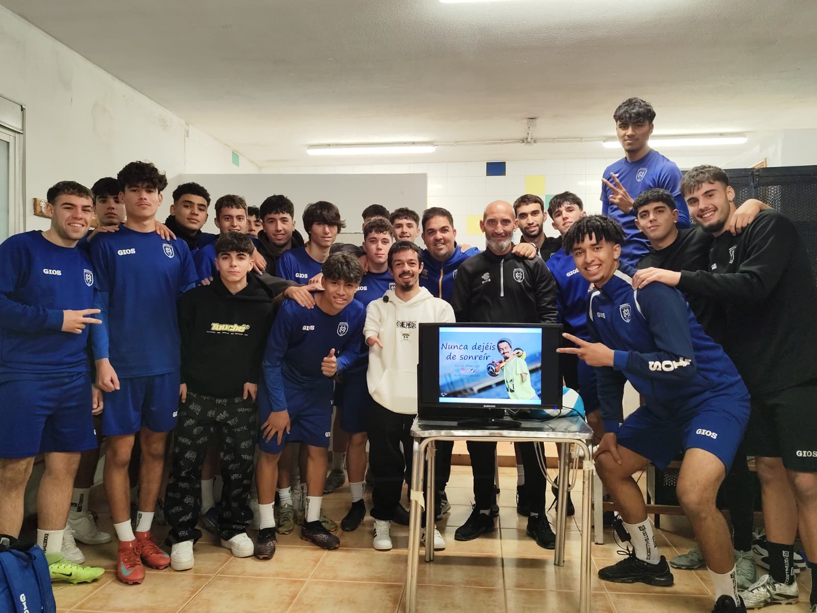 Es una voz vitalista con muchas anécdotas en su haber, como la de cruzar a nado los 5 kms. del Mar Menor, que separan Santiago de la Ribera de la playa de Veneziola de La Manga del Mar Menor, para “incentivar a que la gente quiere llevar a cabo sus propios retos” por nombrar una, y aunque posee un sentido del humor -vamos a llamarlo- «peculiar”, se expresa como pocos: En esta ocasión, y a petición del entrenador del Juvenil de la EF Mar Menor – San Javier, Power, compartió una charla, en el vestuario del Estadio Pitín, “que va más allá del fútbol” para que “no se frenen por miedos, que a menudo, no son reales”, descifrando con palabras, lo que no es una debilidad de cobardes.