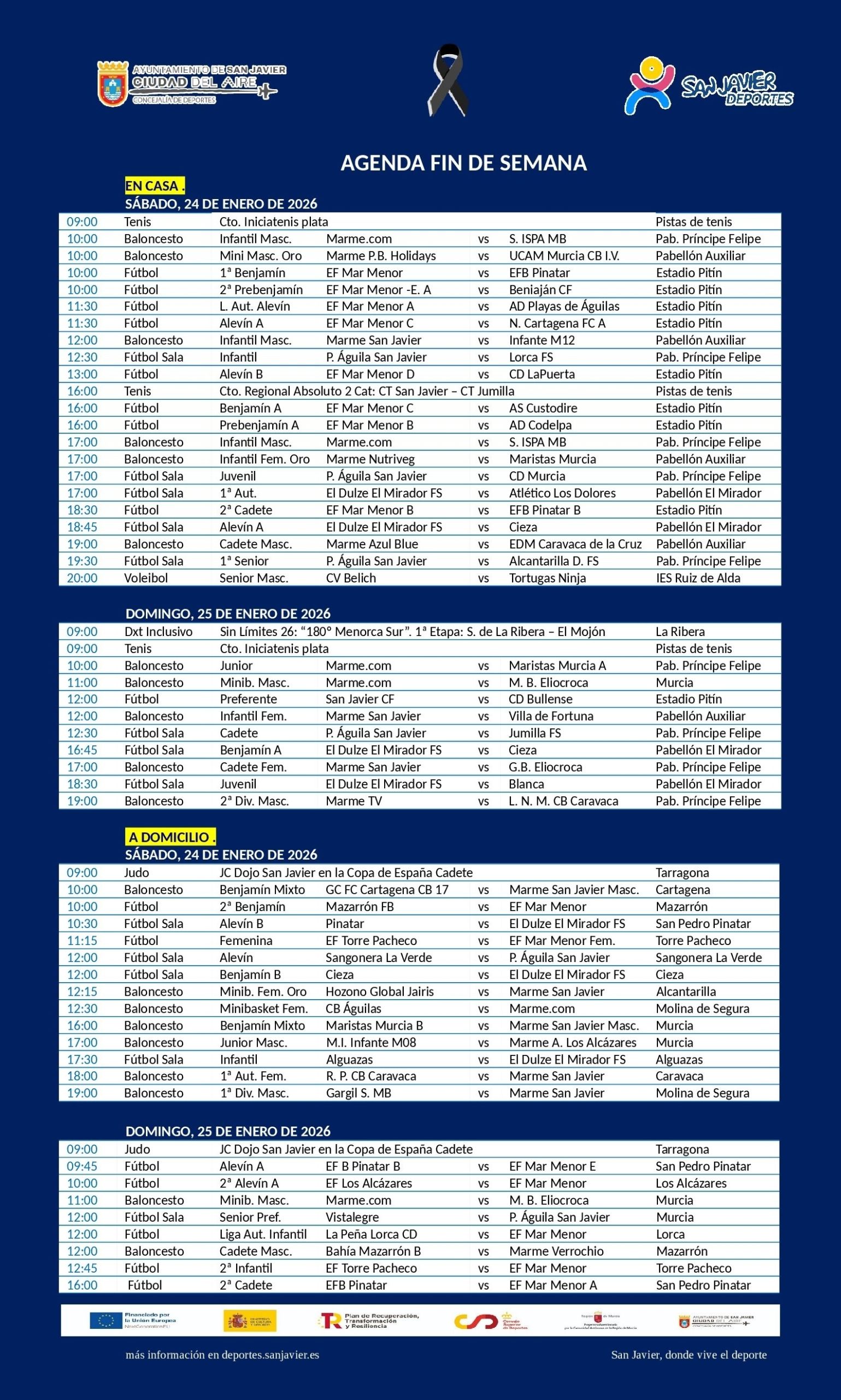 La primera etapa de la Sin Límites 26: «180º Menorca Sur», Santiago de la Ribera – El Mojón, el domingo por la mañana y el Iniciatenis, durante este fin de semana y el próximo (31/01 y 01/02),  en las pistas del Polideportivo, así como el resto de citas y partidos habituales de los clubes, es lo más destacado de este fin de semana deportivo (24/25-enero).