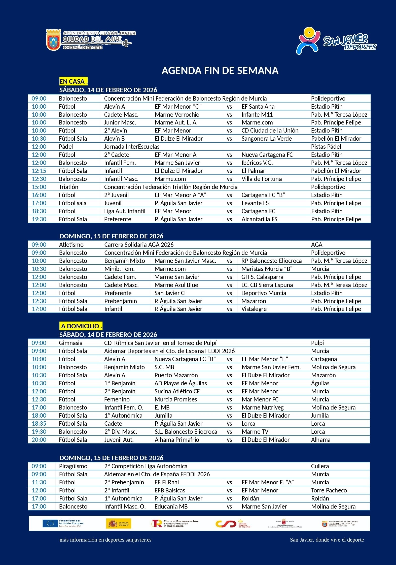 La Carrera Solidaria de la AGA, el domingo por la mañana en Santiago de la Ribera, junto con el resto de citas habituales de los clubes del municipio, es lo más destacado de este fin de semana deportivo (14/15-febrero).