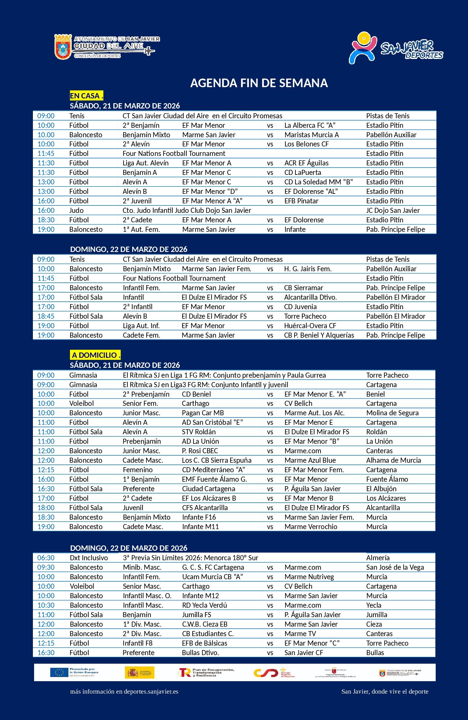 La 3ª ruta preparatoria de la Sin Límites 2026 y el Campeonato de Judo infantil del Club Dojo San Javier, así como las citas habituales de los clubes, es lo más destacado de este fin de semana deportivo (20/21-marzo).