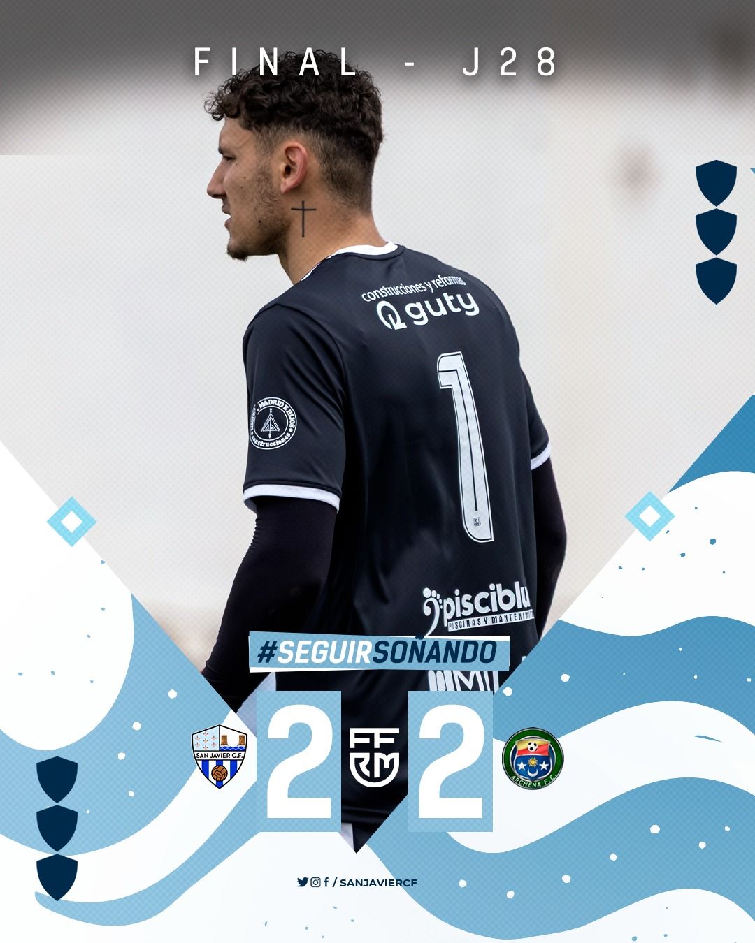Empate (2-2) en el Estadio Pitín, en la Jornada nº 28, entre el Mar Menor Fútbol Club y el Archena. El Alcantarilla con 57 puntos es primero en la clasificación, seguido del Bullas con 56 y del San Javier con 55.