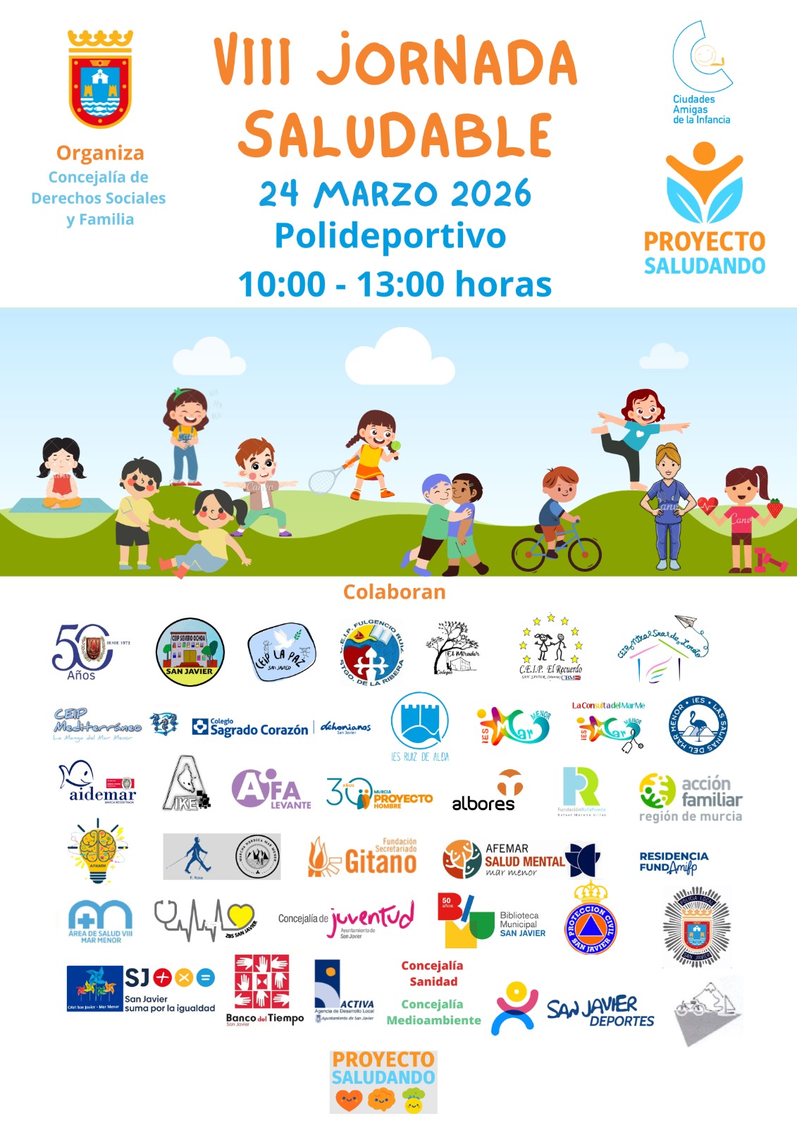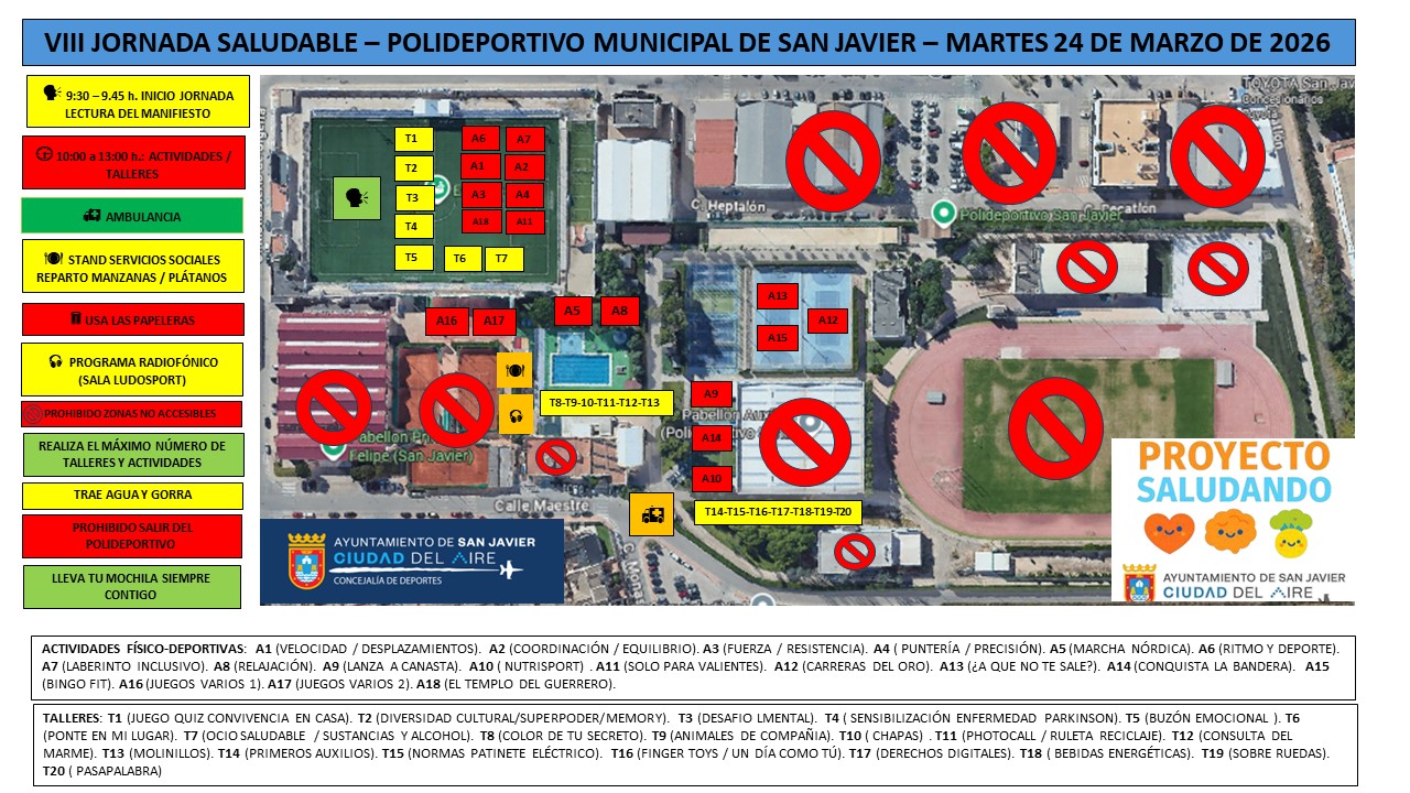 Esta mañana, el Polideportivo municipal acoge la Jornada Saludable, que este año ya va por su VIII edición. El evento, que tiene un horario de 10 a 13h., está organizado por la Concejalía de Derechos Sociales y Familia del Ayto. de San Javier.