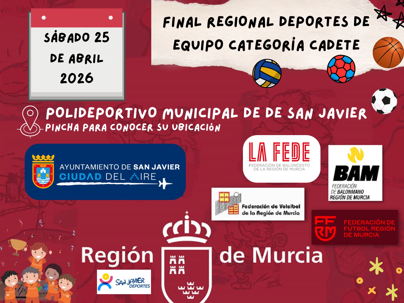 Tras la Final Regional de deportes de equipo en categoría juvenil, celebrada en San Javier el pasado fin de semana del 18 y 19 de abril, el municipio volverá a acoger una nueva cita del deporte escolar regional. En esta ocasión, será el turno de la Final Regional de deportes de equipo en categoría cadete.