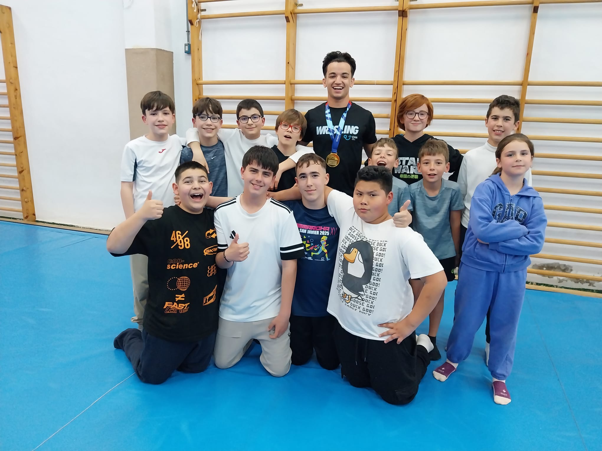 El reciente Campeón de España U23, Carlos Vives, ha visitado la Escuela de Luchas Olímpicas de San Javier, donde dio sus primeros pasos sobre el tapiz. Una jornada especial en la que compartió tiempo, experiencias y motivación con los jóvenes luchadores del municipio.