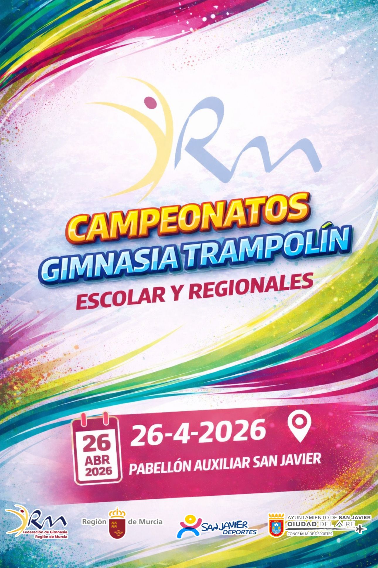 La elegancia, el control y la audacia se darán cita este domingo 26 de abril en el Pabellón Auxiliar de San Javier. El Campeonato Regional de Trampolín Escolar y Regionales. convertirán el Pabellón Auxiliar en un escenario de vuelos imposibles, donde los gimnastas buscarán la perfección técnica en cada salto. La jornada arrancará a las 08:00h con los entrenamientos oficiales, seguida del desfile inaugural a las 08:50h. La competición se dividirá en dos bloques de máxima intensidad, con una primera entrega de trofeos a las 10:30h y la ceremonia de clausura final a las 13:35h. Una oportunidad única para presenciar la disciplina más aérea de la gimnasia en el corazón de un municipio que este fin de semana decide no tener horizontes.