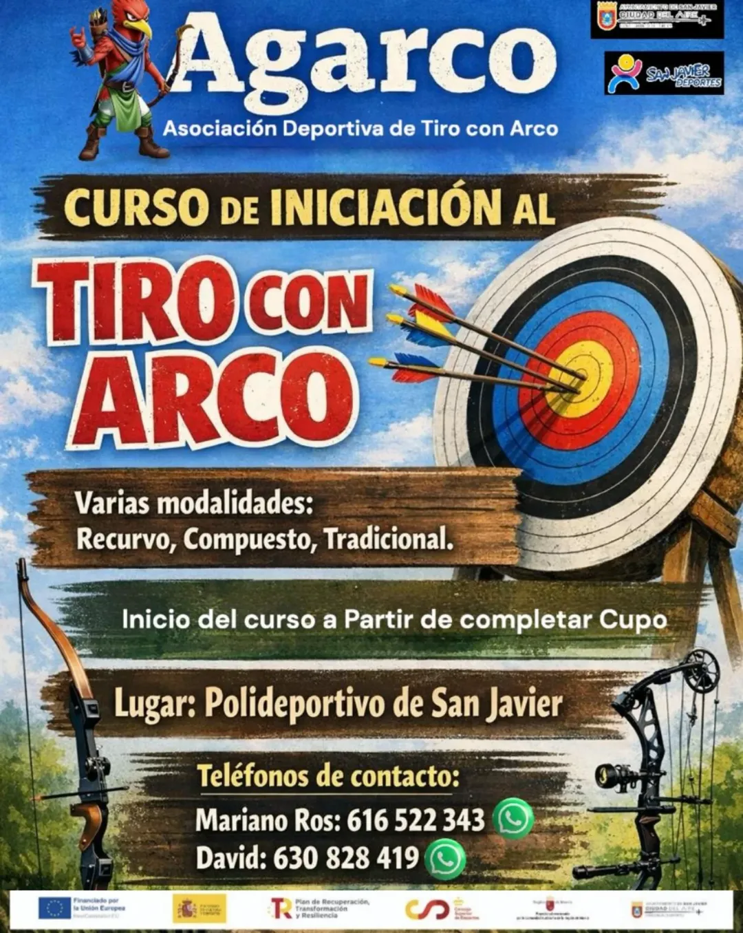 Una iniciativa del A.D. Agarco – San Javier te permite introducirte en el mundo del tiro con arco ¿te apuntas?: Si quieres iniciarte y aprender desde cero en varias modalidades como recurso, compuesto y tradicional puedes hacerlo con monitores expertos del propio Club que te ayudarán a trabajar las técnicas, normativa, seguridad y te mostrarán todos los secretos de este deporte.