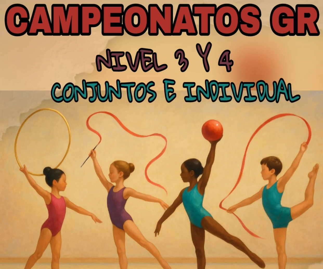 Campeonatos GR Nivel 3 y 4 Conjuntos e Individual El sábado, 15 de noviembre de 2025, de 08h., a 15h. Pabellón Auxiliar Más Información
