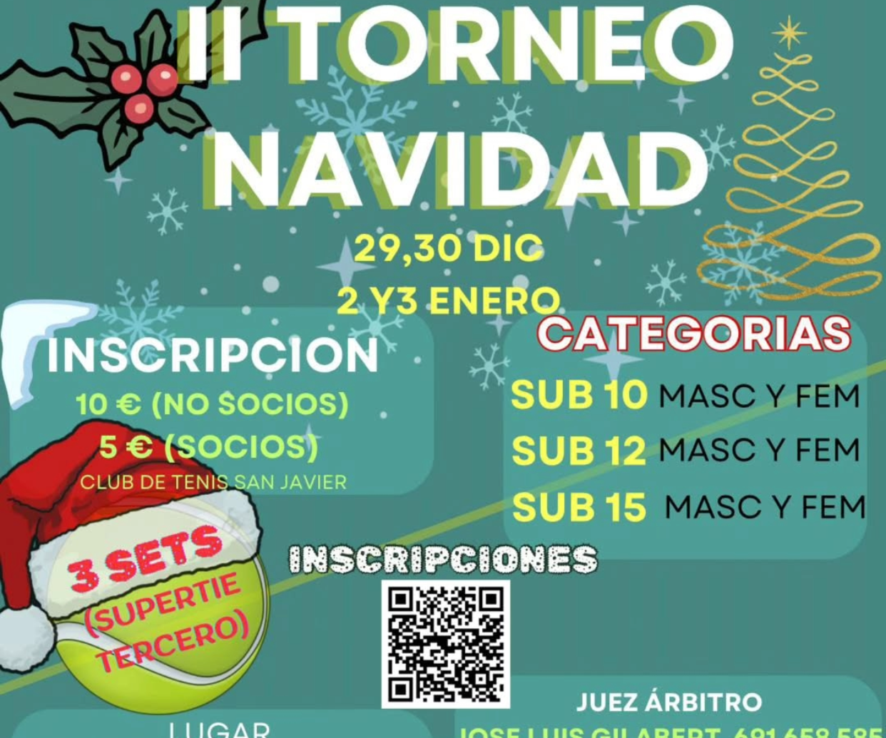 II Torneo de Navidad El lunes 29 y martes 30 de diciembre de 2025 y el viernes 2 y sábado 3 de enero de 2026 Polideportivo Más Información