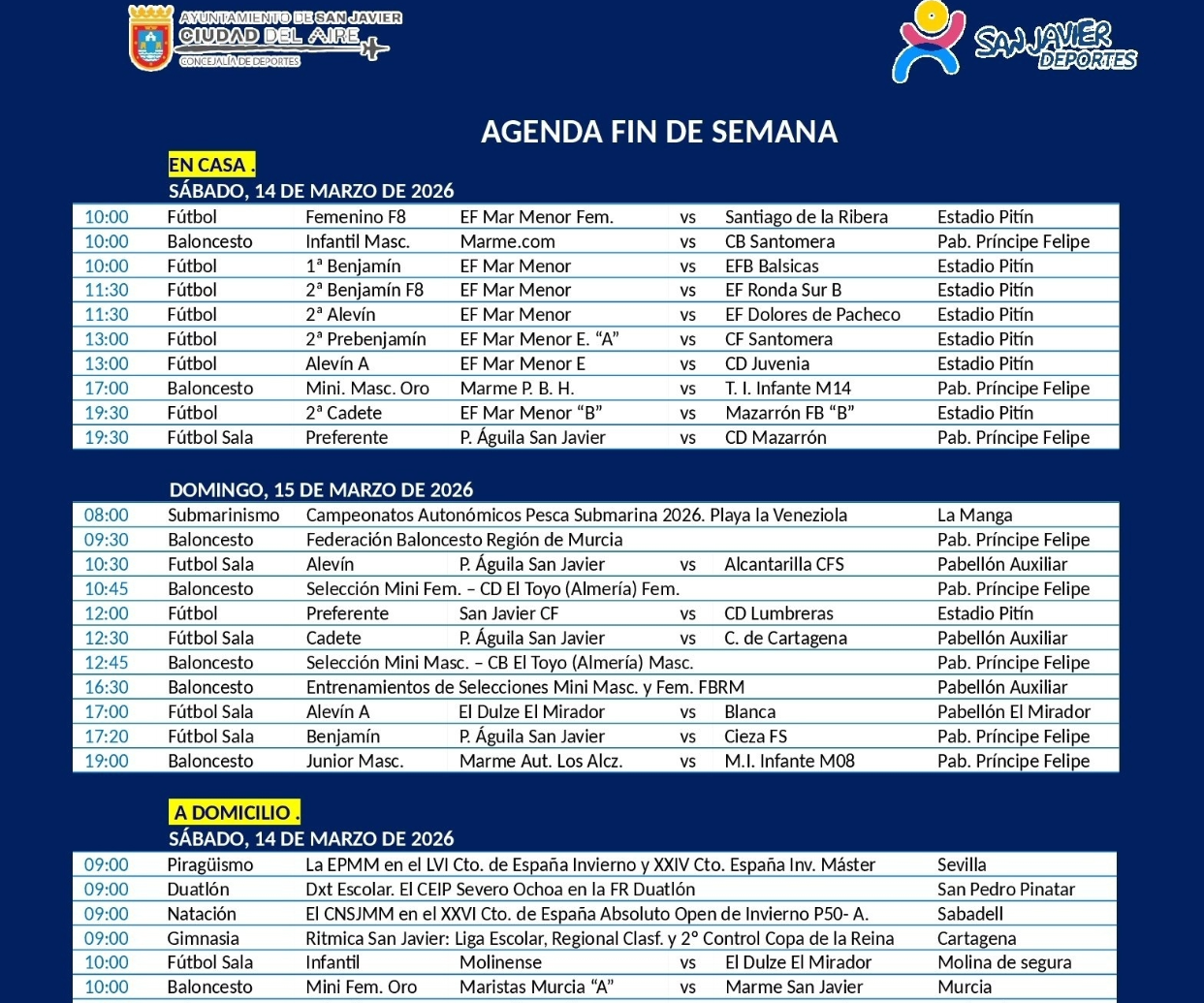 Agenda deportiva municipal (12/13-abril)