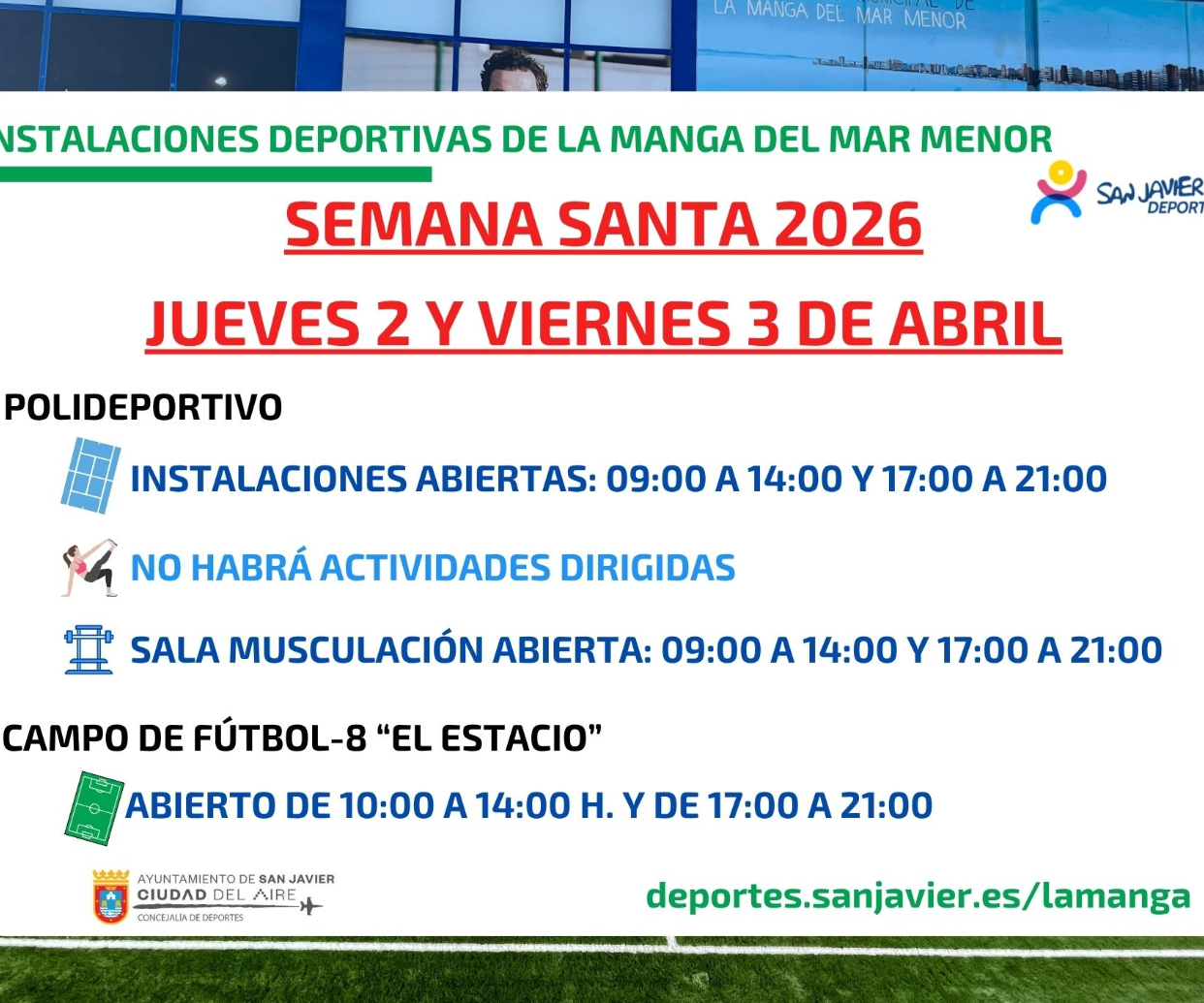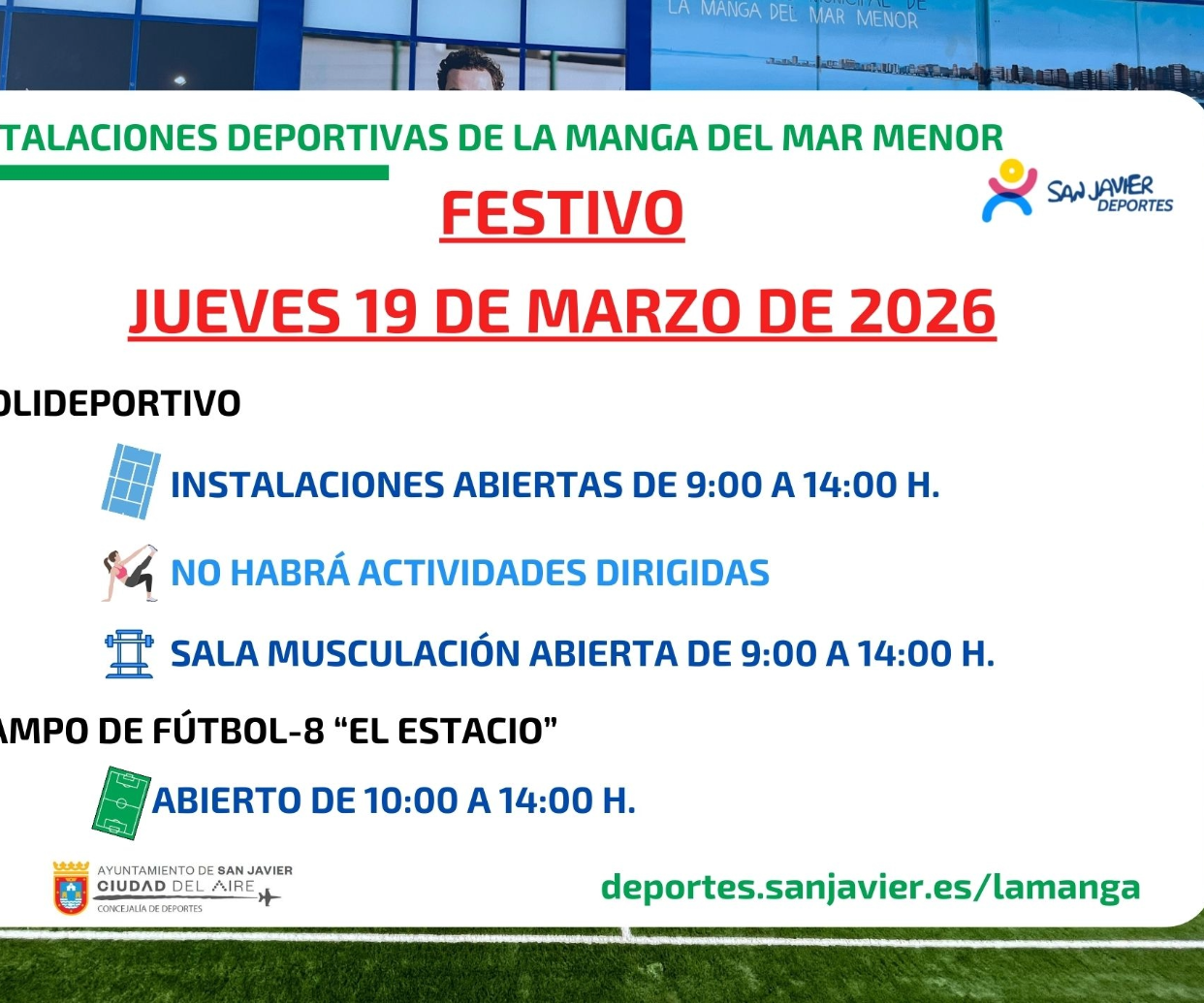 Concejalía. Próximos festivos en instalaciones deportivas de La Manga del Mar Menor