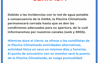 Mientras dure el cierre de la piscina climatizada, como consecuencia de la DANA, se ofrece a los cursillistas de la Piscina Climatizada [...]